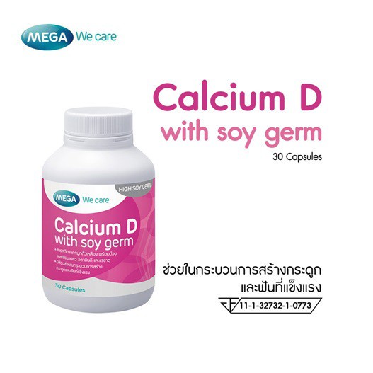 Mega We Care Calcium-D With Soy Germ 30's เมก้า วีแคร์ แคลเซียม ดี แคลเซียมผสมจมูกถั่วเหลือง