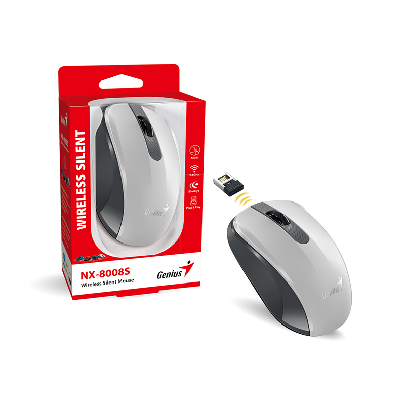 Genius NX-8008s Mouse Wireless Silent Blue-Eye (USB RF, 1200 DPI, BlueEye Optical Sensor) สินค้าแท้ ประกันศูนย์ SiS 1 ปี