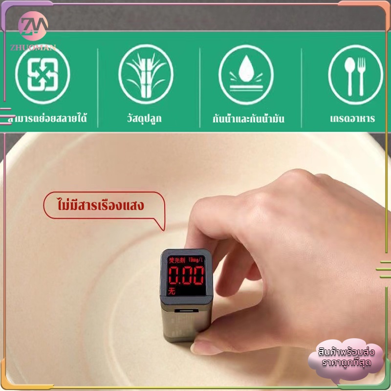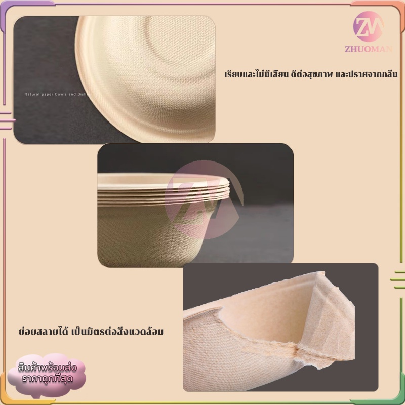ชามกระดาษ ชามกระดาษใส่อาหาร ชามกระดาษใช้แล้วทิ้ง(แพ็ค 50 ชิ้น)ถ้วยชานอ้อย กันน้ำและกันน้ำมัน เข้าไมโครเวฟได้