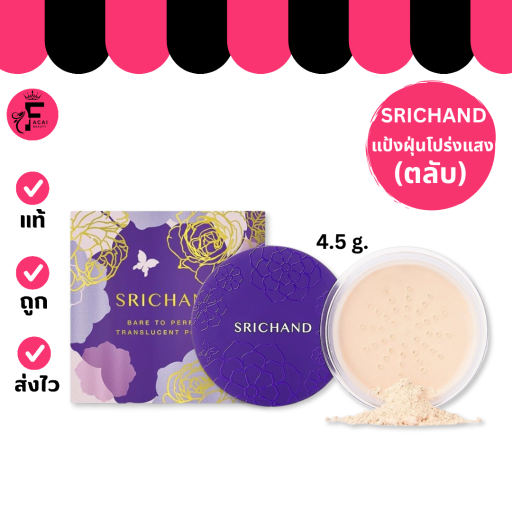 (1 ตลับ) Srichand ศรีจันทร์ แบร์ ทู เพอร์เฟคท์ ทรานส์ลูเซนท์ พาวเดอร์ แป้งฝุ่นโปร่งแสง(4.5 g.)