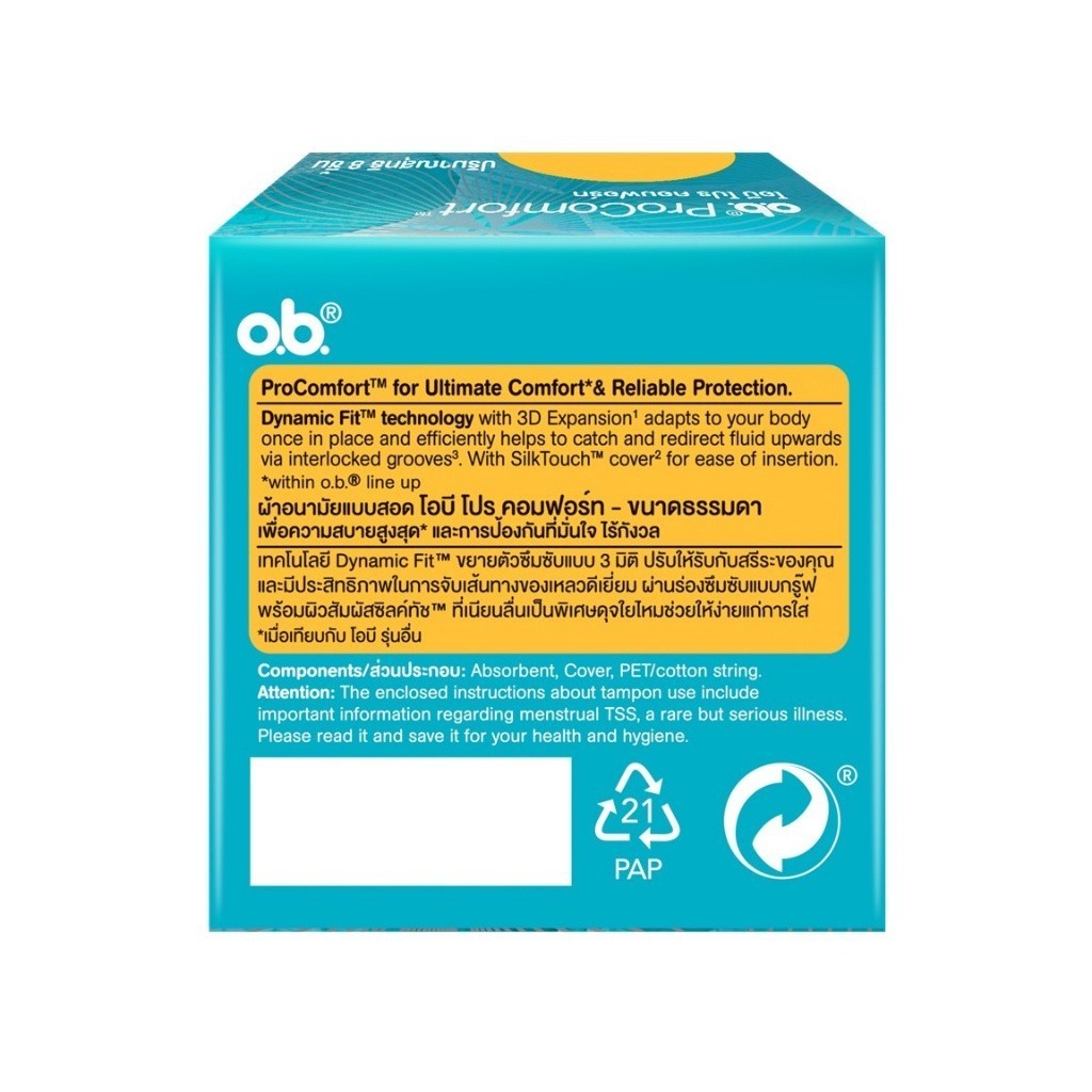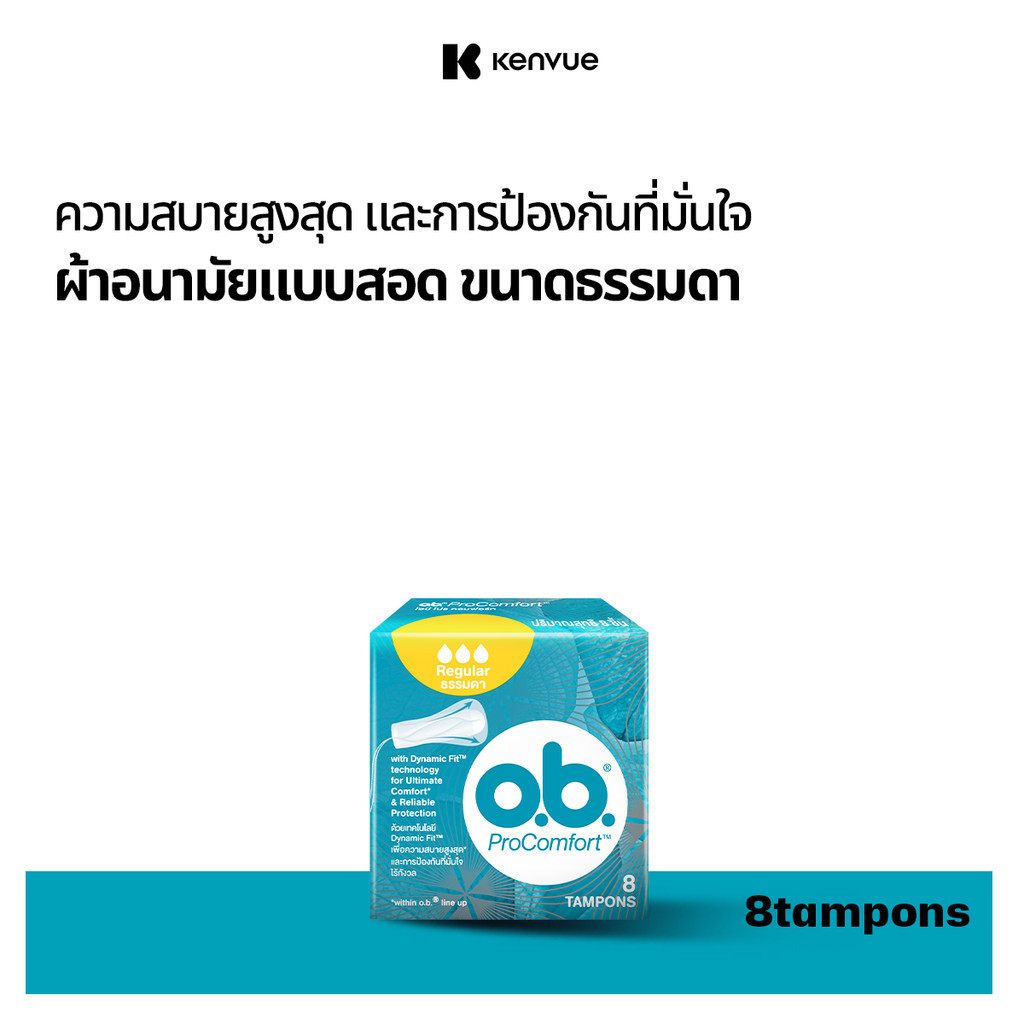 โอบี โปรคอมฟอร์ท ธรรมดา 8ชิ้น O.B. ProComfort Regular 8 tampons ผ้าอนามัยแบบสอด
