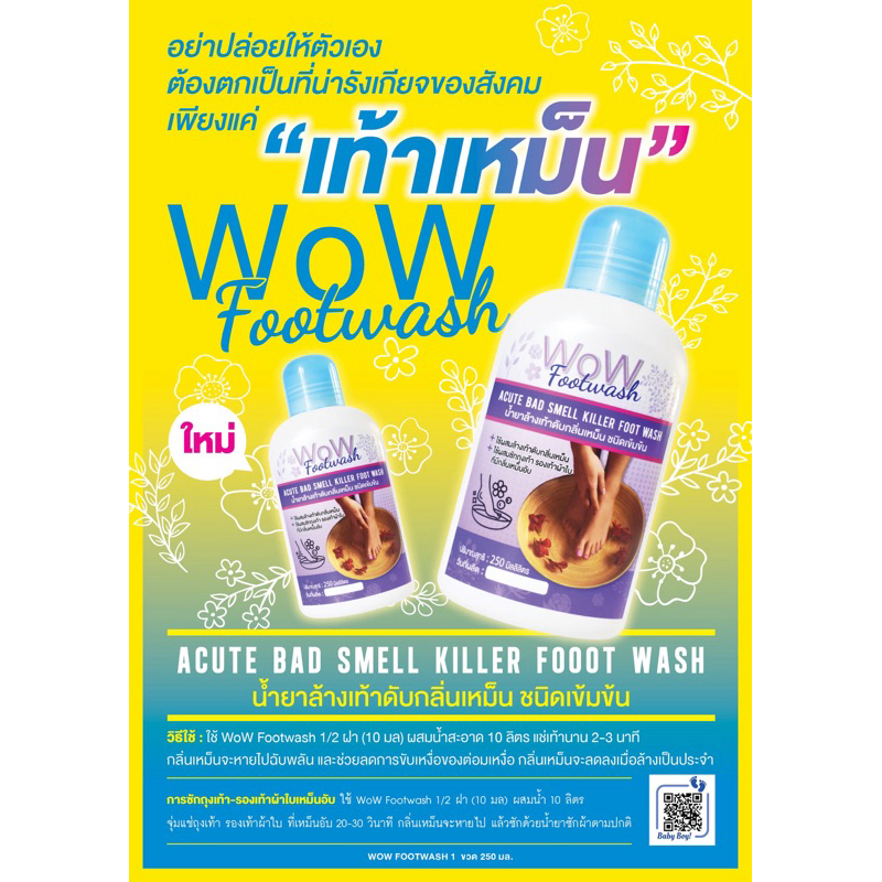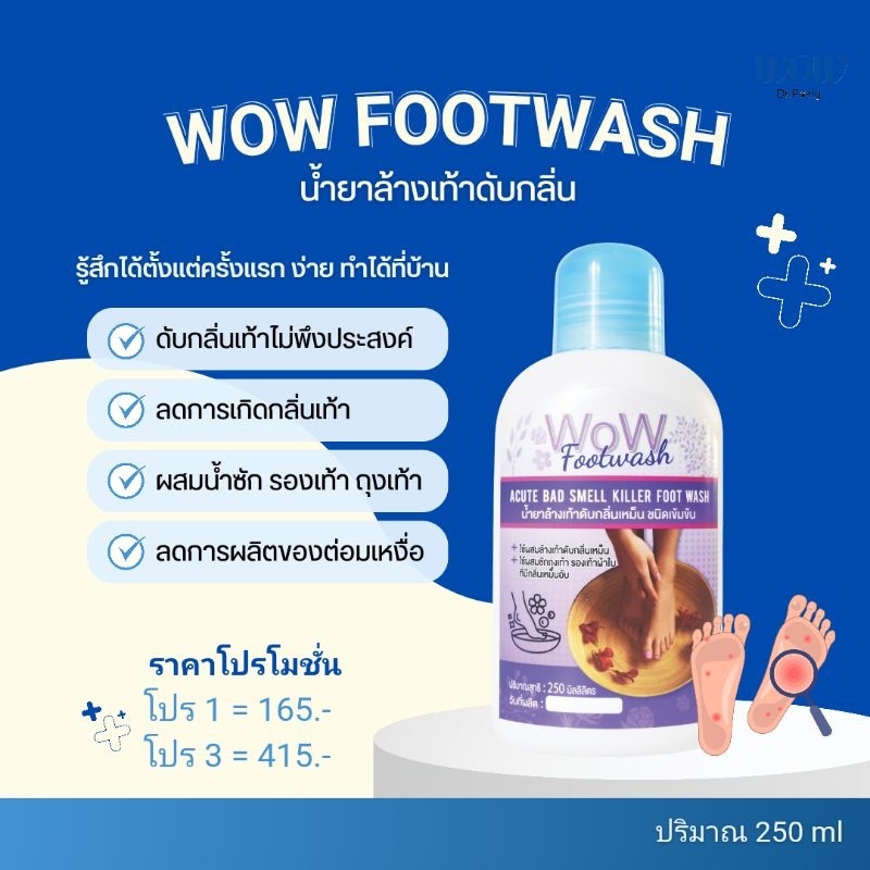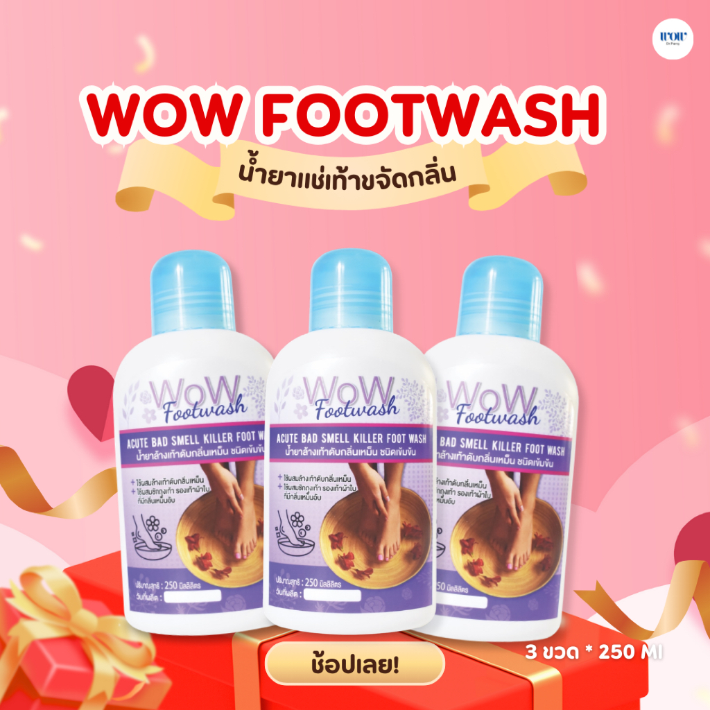 WoW Footwash (แพค3ขวด) น้ำยาล้างเท้าดับกลิ่นเหม็น ชนิดเข้มข้น
