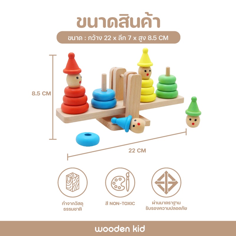 Wooden Kid บาลานซ์พร้อมห่วงสี ของเล่นไม้เสริมพัฒนาการ Balance game