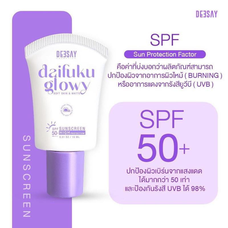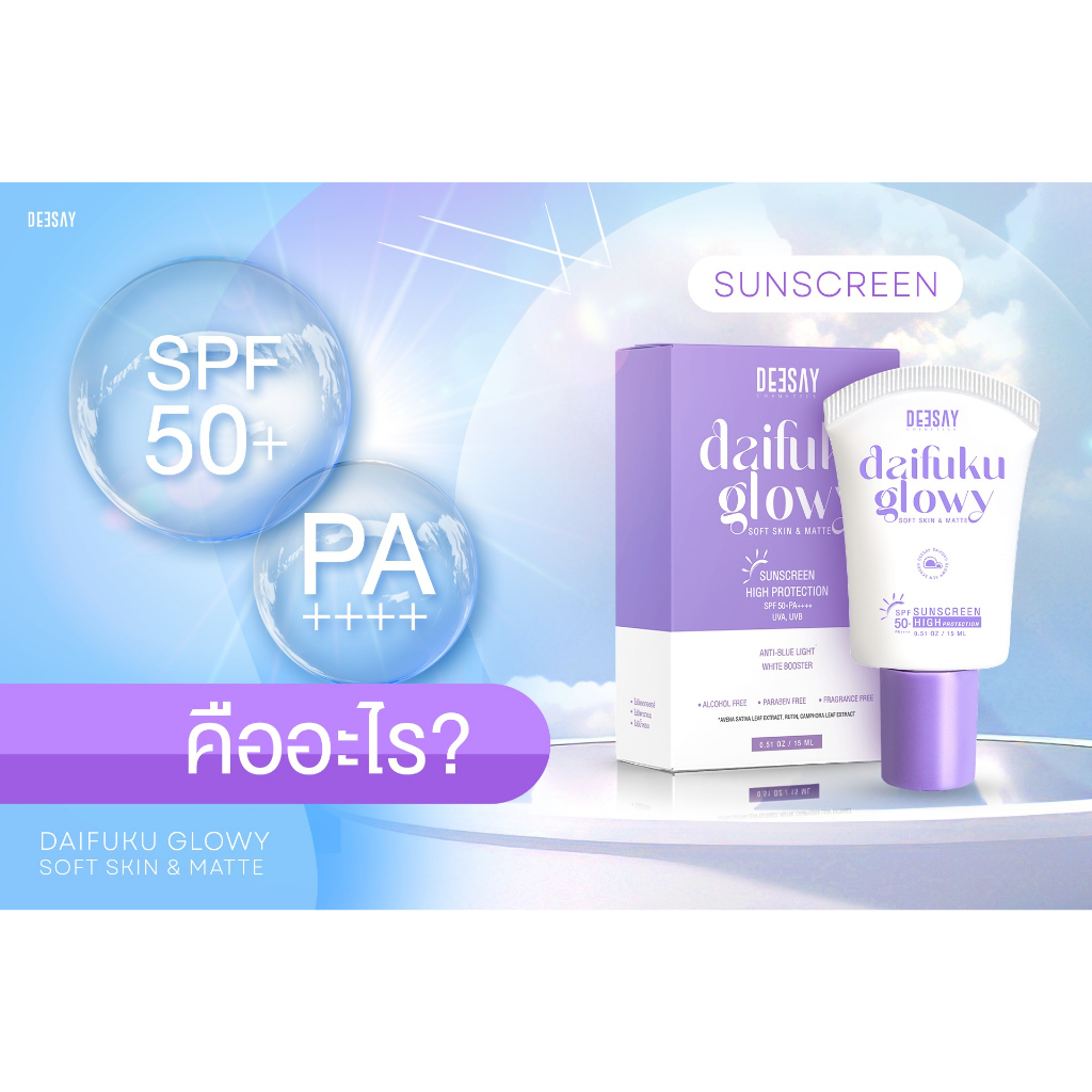 ครีมกันแดดดีเซ้ย์ไดฟูกุ โกลว์วี่ ซอฟต์ สกิน แอนด์ แมท ซันสกรีน Daifuku Glowy Soft Skin & Matte Sunscreen 15ml
