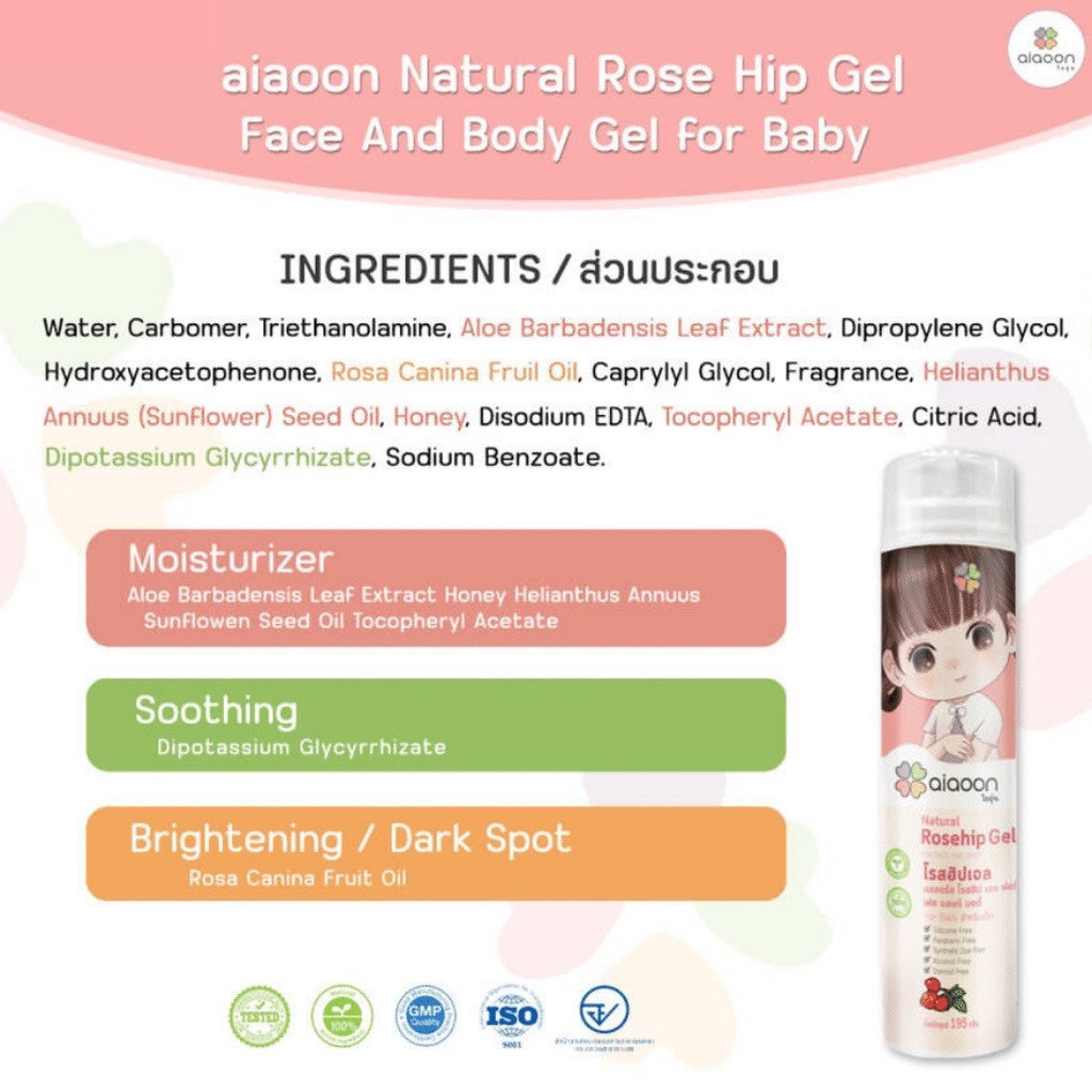 ไออุ่น โรสฮิปเจล บำรุงผิว ลดรอยดำ ขาลายจากยุงกัด ผิวไหม้แดด รอยผื่นร้อน ผื่นคัน Aiaoon