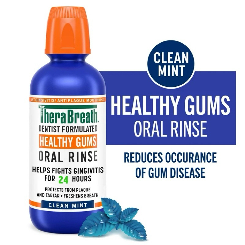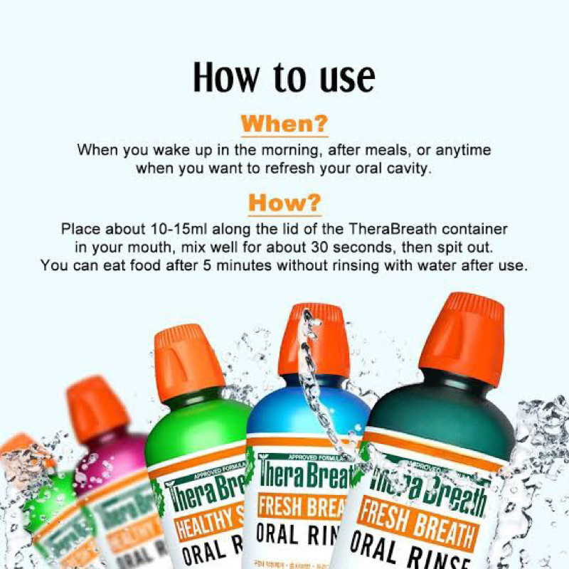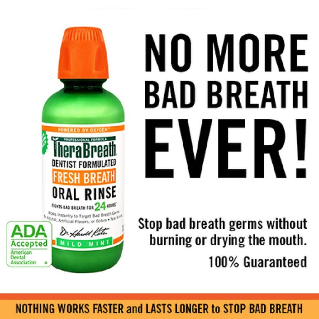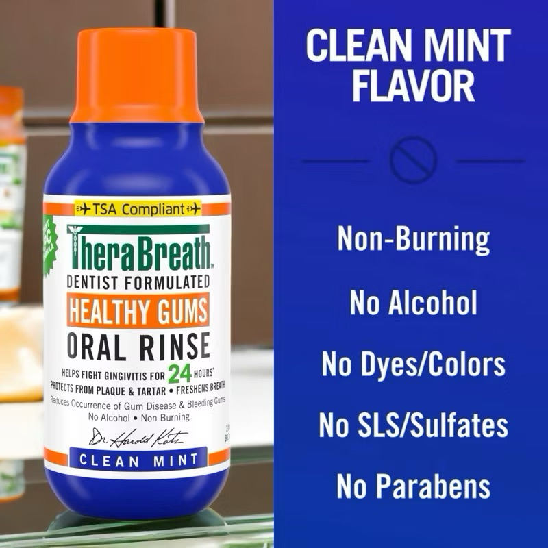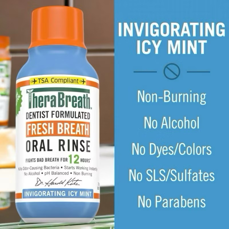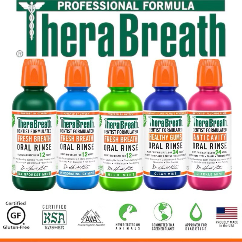 📦Package แท้นำเข้า🇺🇸 TheraBreath น้ำยาบ้วนปาก สูตรปราศจากแอลกอฮอล์ 12-Hour Fresh Breath Oral Rinse, Mild Mint,16.0 fl oz