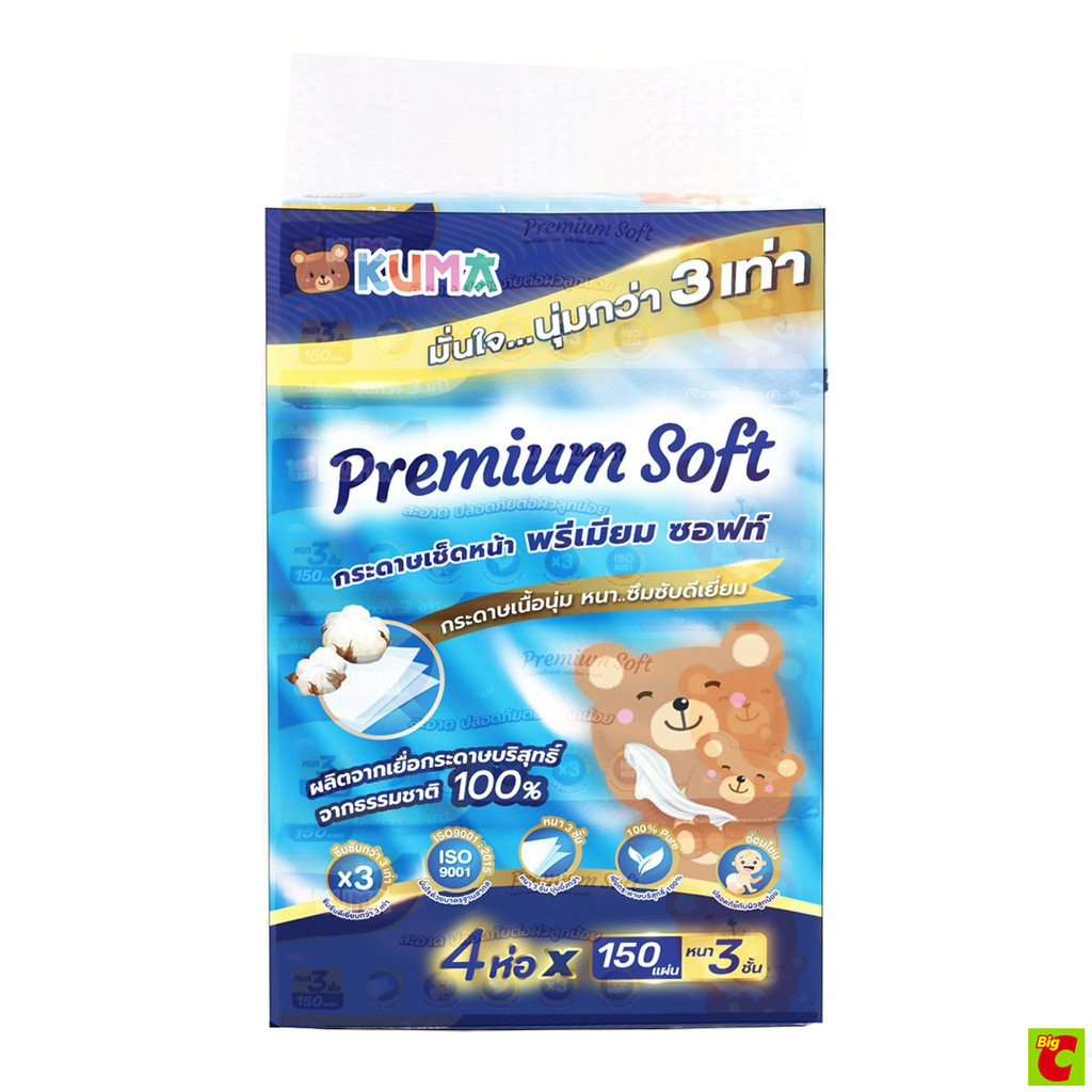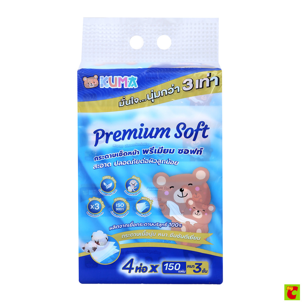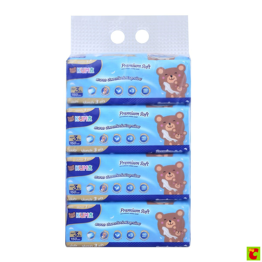 คุมะ กระดาษทิชชู่พรีเมียม 150 แผ่น x 4 ชิ้น