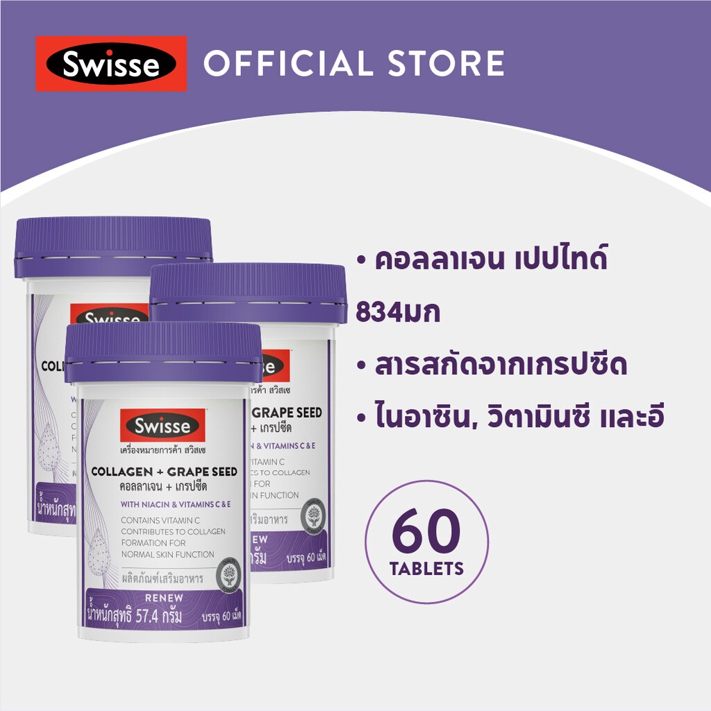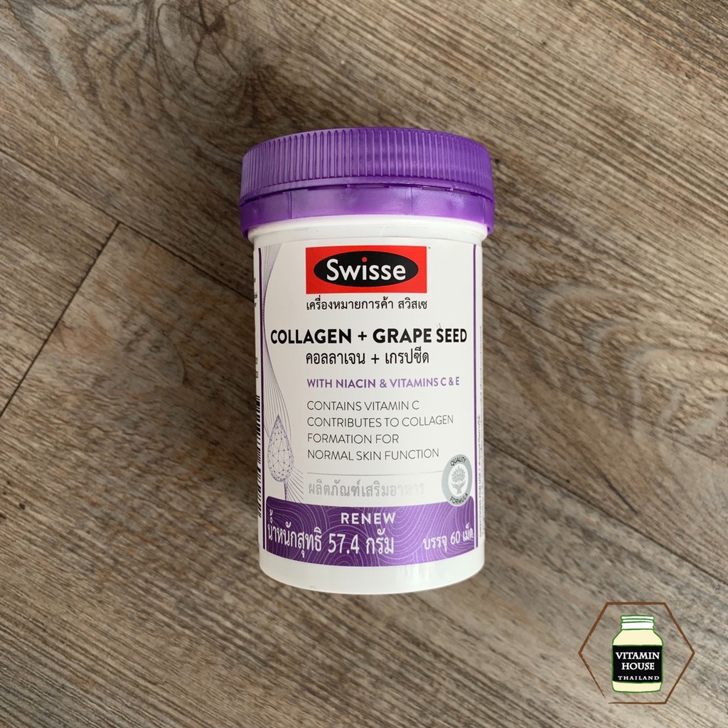 ‼️EXP 10/26‼️Swisse Collagen + Grape Seed สวิสเซ คอลลาเจน + เกรปซีด (บรรจุ 60 เม็ด)