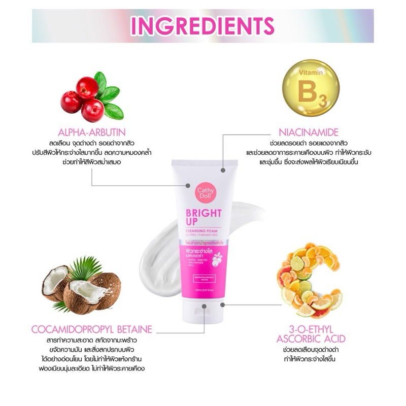 Cathy Doll Bright Up Cleansing Foam 150 ml โฟมล้างหน้า สูตรลดเลือนความหมองคล้ำ