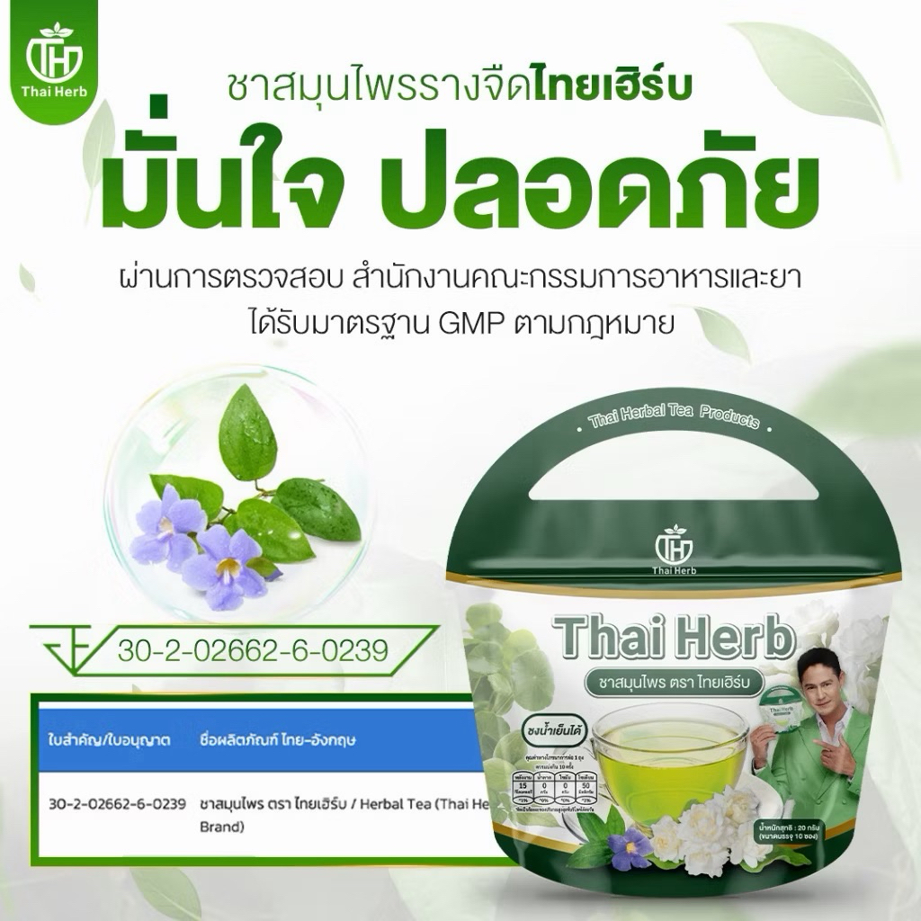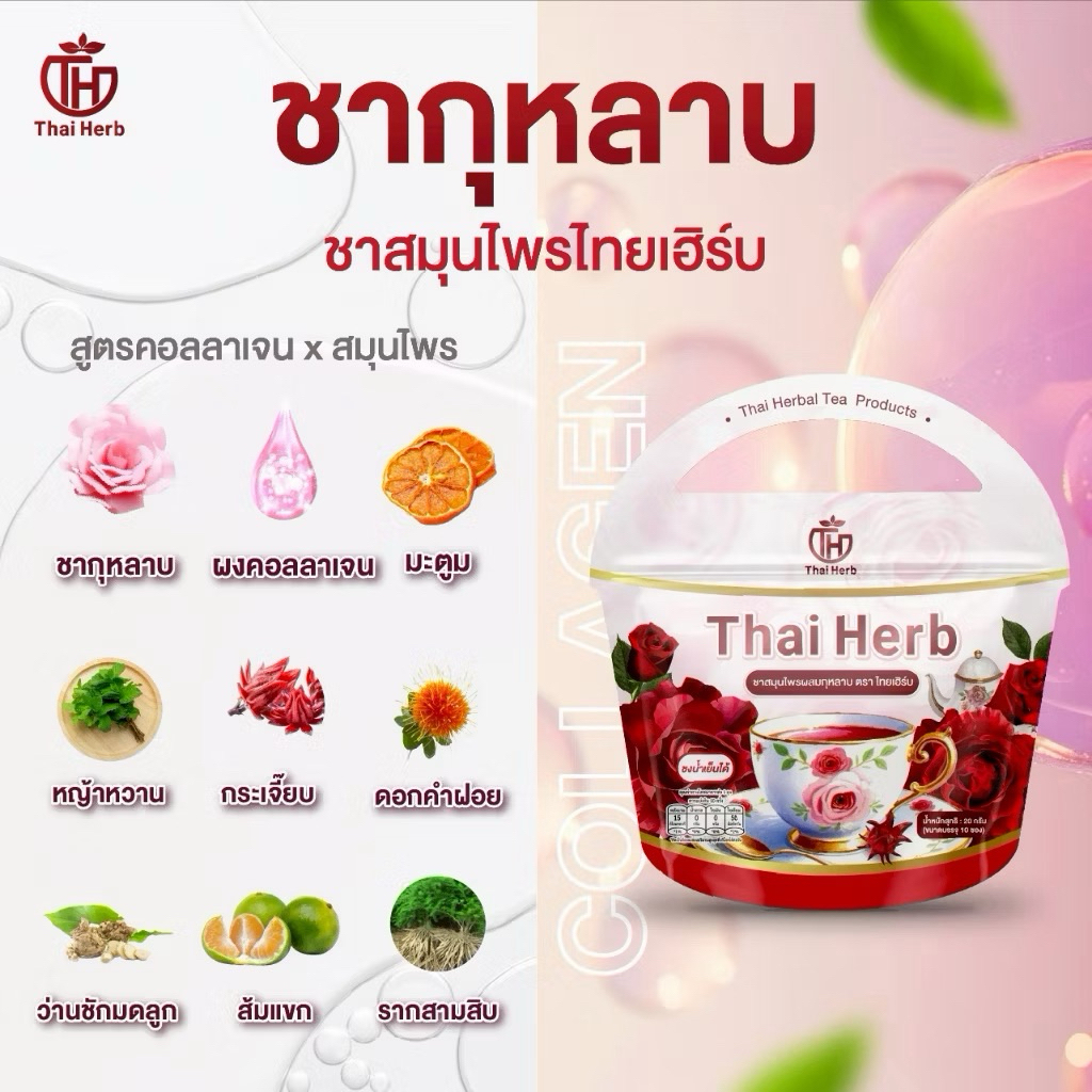 ชาสมุนไพร รางจืด ตราไทยเฮิร์บ ThaiHerb/ชากุหลาบ ไทยเฮิร์บ/ขมิ้นชัน/เก๊กฮวย 1 ห่อ 10 ซอง มี 4 สูตร