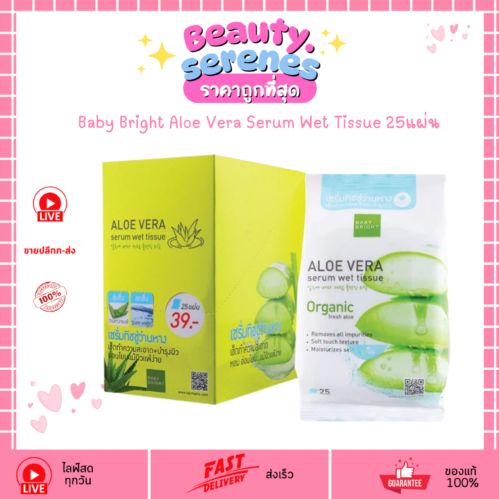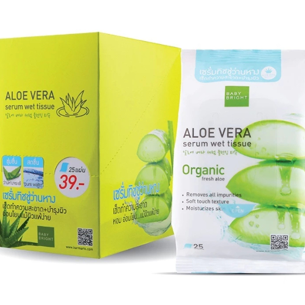 ทิชชู่เปียกอโลเวร่า Baby Bright Aloe Vera Serum Wet Tissue 25แผ่น
