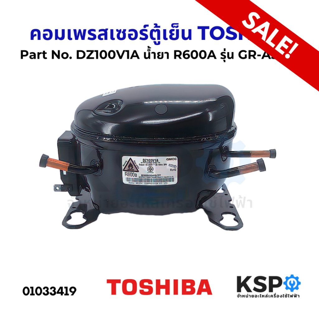 คอมเพรสเซอร์ ตู้เย็น TOSHIBA โตชิบา Part No.DZ100V1A น้ำยา R600A รุ่น GR-A58K อะไหล่ตู้เย็น