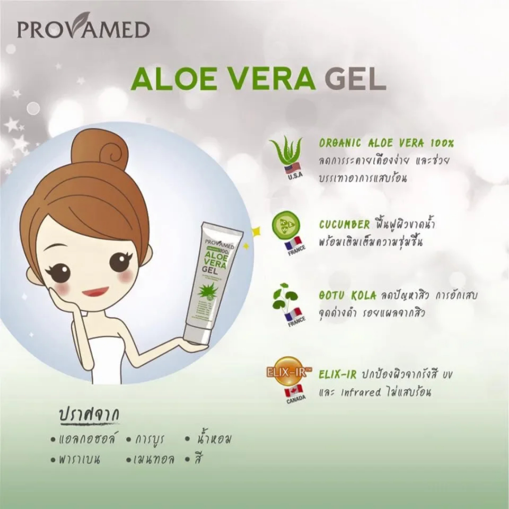 Provamed Aloe Vera Gel Organic 100% 150g เจลว่านหางจระเข้ ช่วยฟื้นฟูสภาพผิว ลดการระคายเคืองง่าย