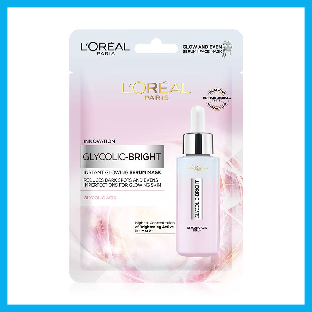 Loreal Paris Glycolic Bright Instant Glowing Serum Mask 22g ลอรีอัล ปารีส แผ่นมาสก์หน้า.