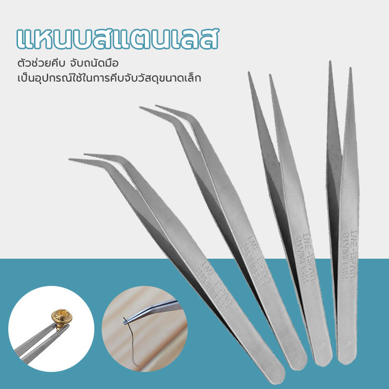 คีบหนีบสแตนเลส คีมหนีบอเนกประสงค์ มี 2 แบบ ปากคีบงอ ปากคีบแหลม Stainless steel tweezers