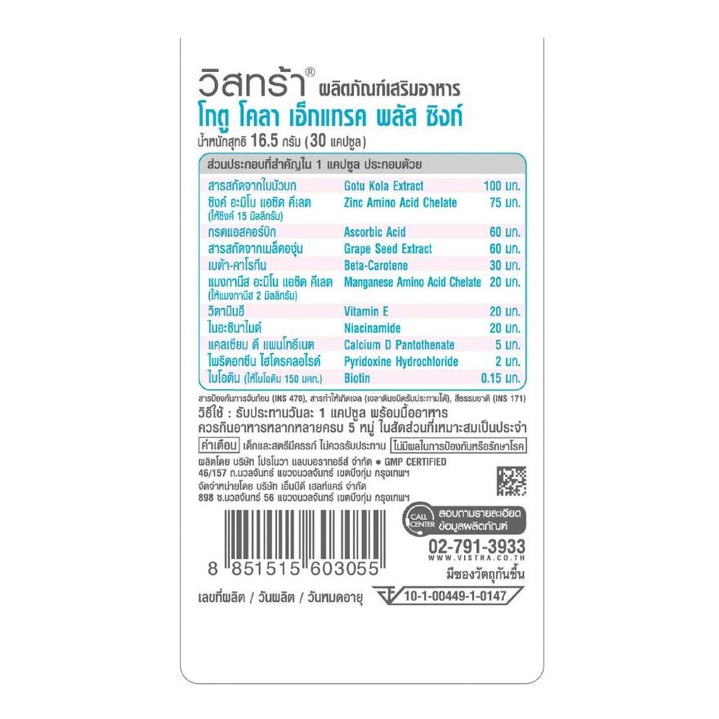 Vistra ผลิตภัณฑ์เสริมอาหาร Vistra Gotu Kola Extract Plus Zinc วิสทร้าโกตู โคลา พลัส ซิงค์