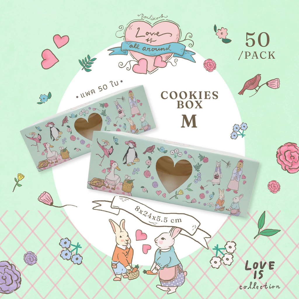 กล่องคุ้กกี้ 8x24x5.5 CM (50 ใบ/แพ็ค) Size M พายสับปะรส สโคนผลิตจากกระดาษคุณภาพ สีพลาสเทล