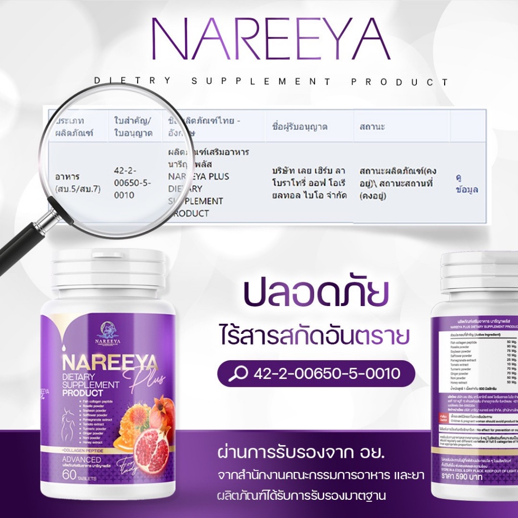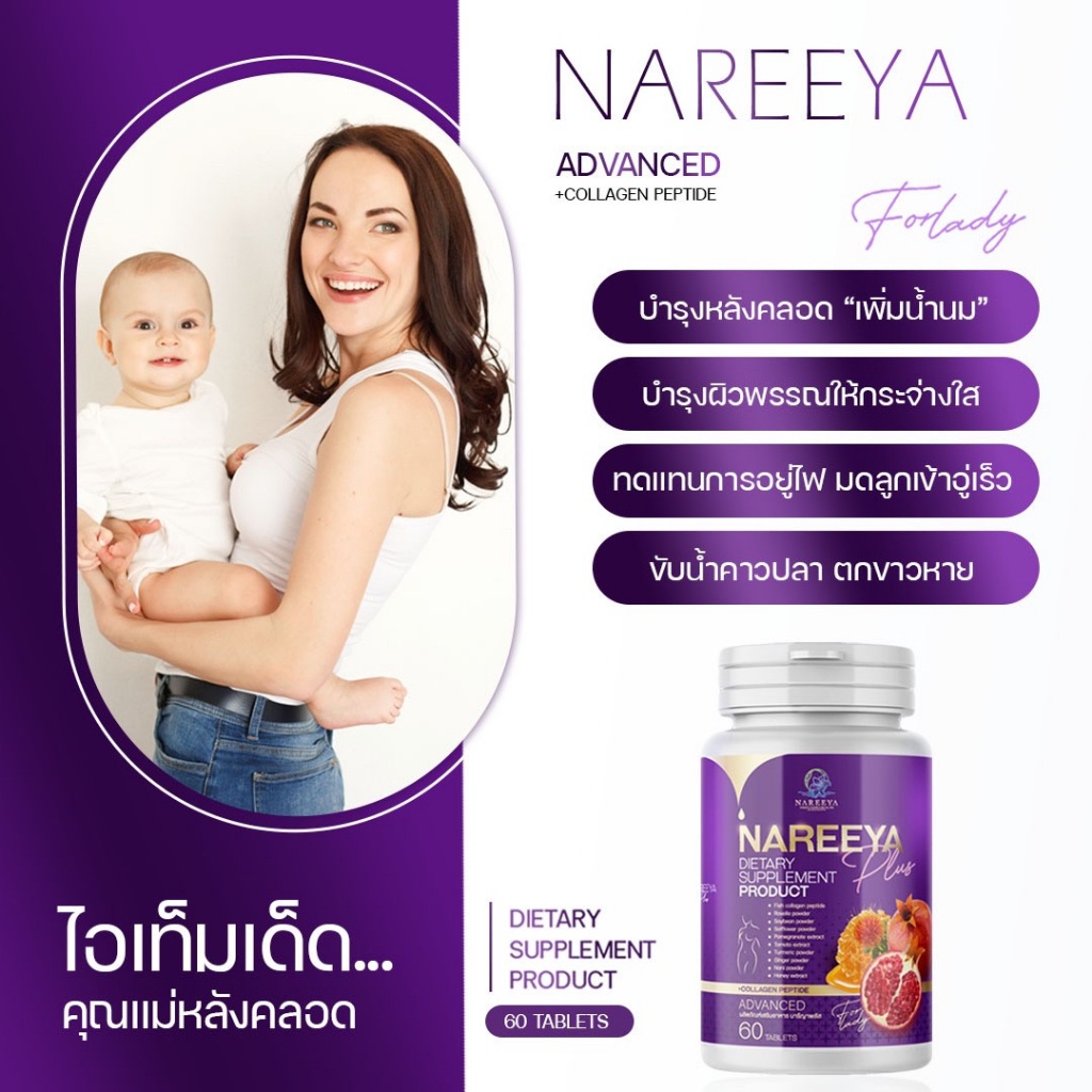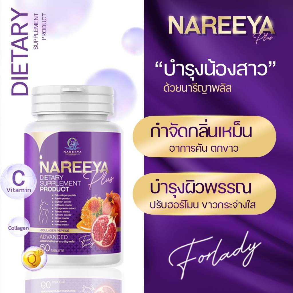 แพคเกจใหม่ นารีญา พลัส NAREEYA สมุนไพร อาหารเสริม สำหรับผู้หญิง นารียา 60Cap.