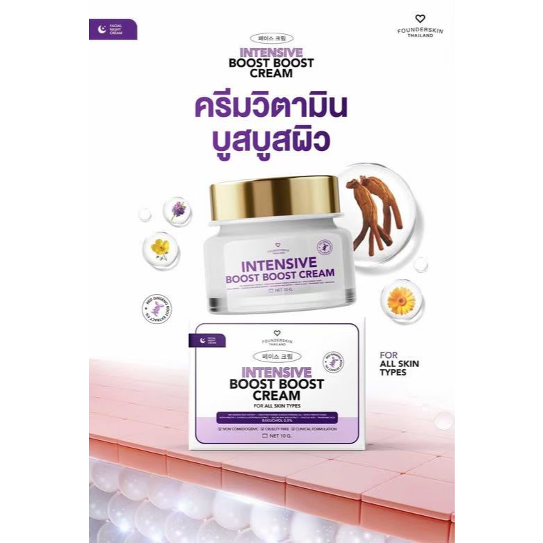 ครีมบำรุงผิวหน้า บูสบูส ฟาวเดอร์สกิน Intensive Boost Boost Cream Founderskin บางเบา ซึมง่าย ดูกระจ่างใส ขนาด 10 g. ♥️♥️