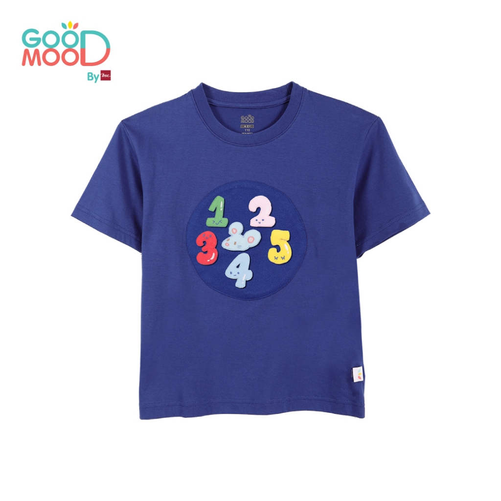Good Mood by bsc เสื้อยืดคอกลม แขนสั้น สีน้ำเงิน + PATCHES ลายตัวเลข 6 ชิ้น สำหรับเด็กอายุ 2-3 ปี ผ้าคอตตอน