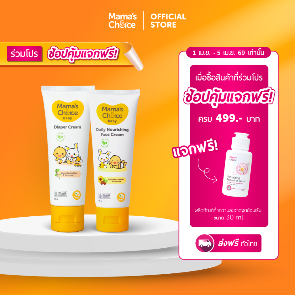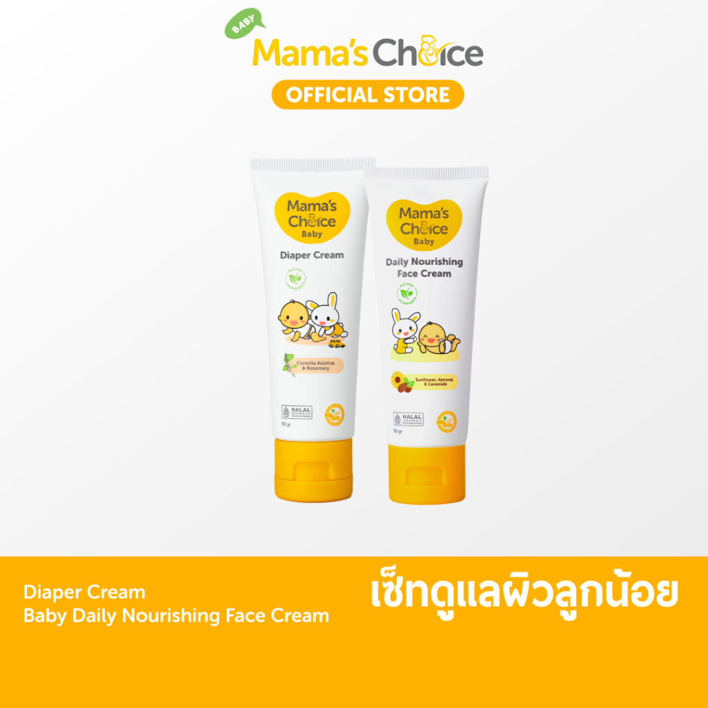 Mama's Choice เซ็ทดูแลผิวลูกน้อย (ครีมทาหน้าเด็ก+ครีมทาผื่นเด็ก ผื่นผ้าอ้อม) อ่อนโยน ปลอดภัย - Baby Skin Protection Set