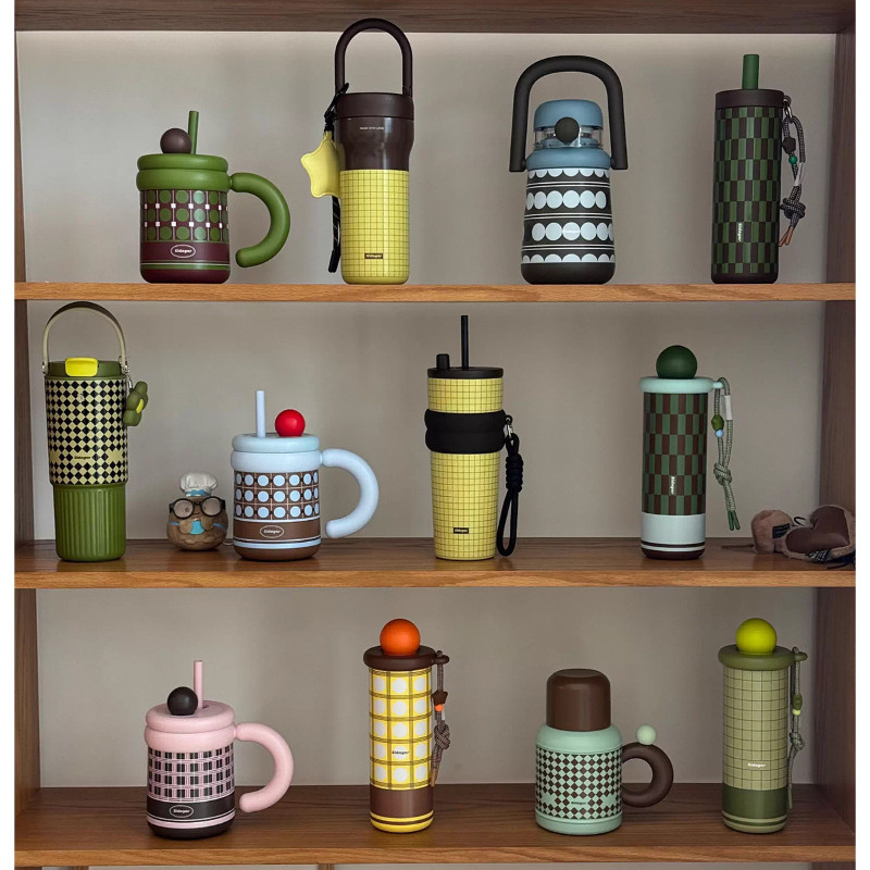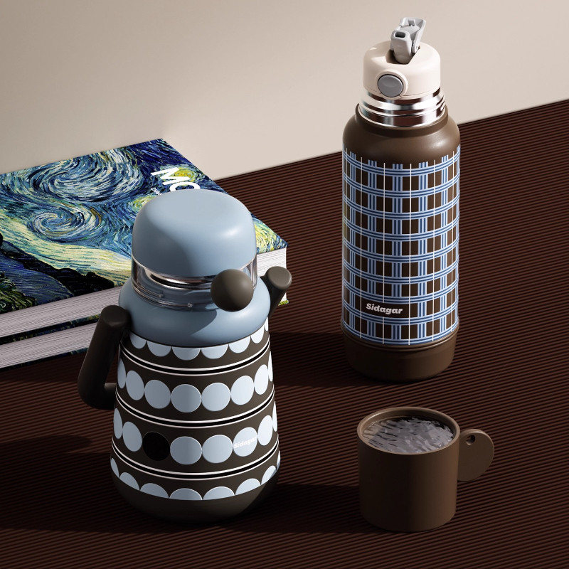 【LUCKY】Sidagar เซรามิคเคลือบซับกระติกน้ําร้อนถ้วยรถฟางถ้วย 316 สแตนเลสปิดผนึกป้องกันการรั่วแบบพกพาขวดน้ําความร้อน