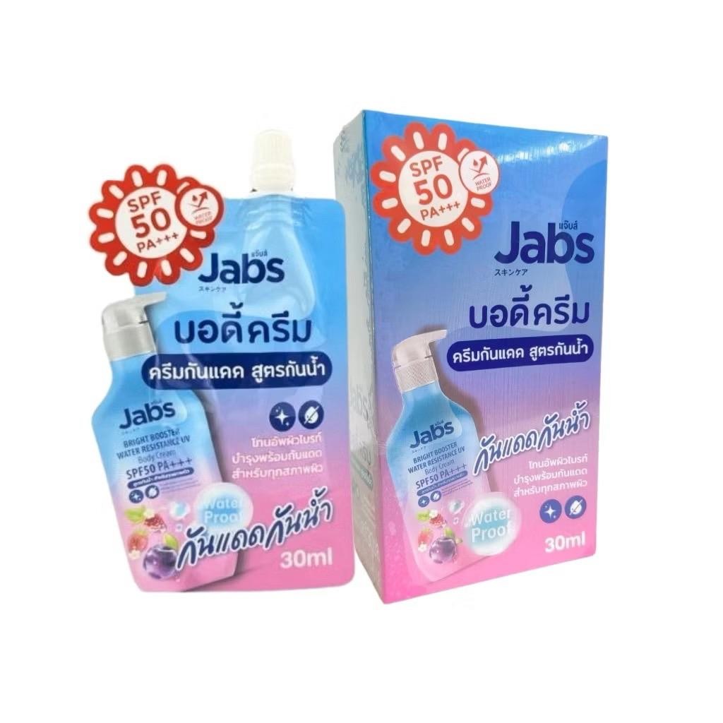 แจ๊บส์สูตรกันน้ำ (แบบซอง) บอดี้ ครีม Jabs Bright Booster waterproof SPF50 PA+++ ( 1 ซอง 30 ml )