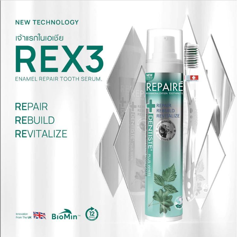 Dentiste' Repaire-ReX3 70g เซรั่มฟัน + ยาสีฟัน 2in1 65125 เพิ่มเนื้อผิวฟันให้แข็งแรง ป้องกันฟันผุ เสียวฟัน