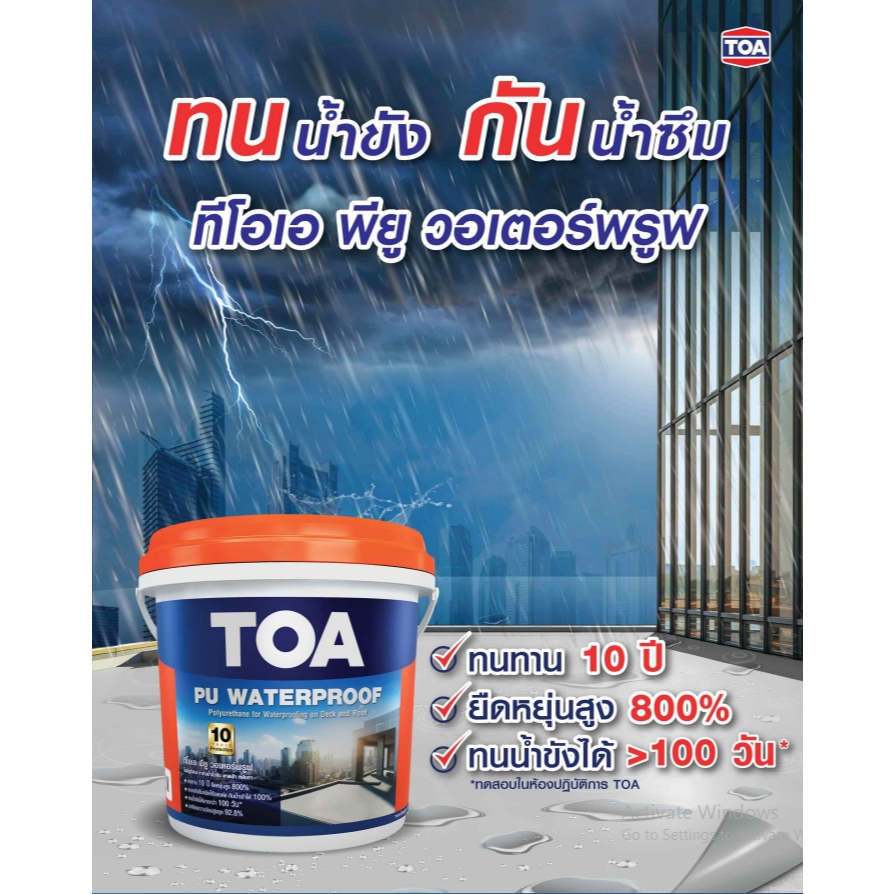 TOA PU WATERPROOF (4 กิโลกรัม) ทีโอเอ พียู วอเตอร์พรูฟ โพลียูรีเทน ทากันน้ำรั่วซึม ดาดฟ้า หลังคา