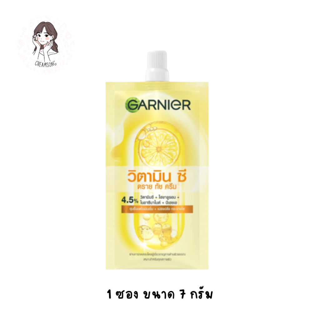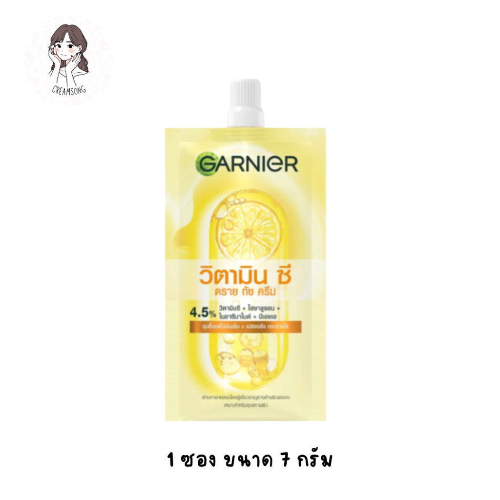 [ซองเหลือง] พร้อมส่ง Garnier Dry Touch Cream การ์นิเย่ ดราย ทัช ครีม วิตามินซี 7 ml. แบบซอง