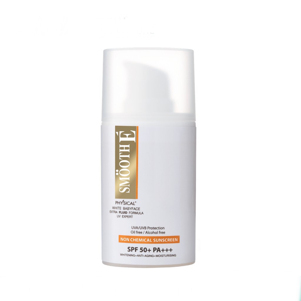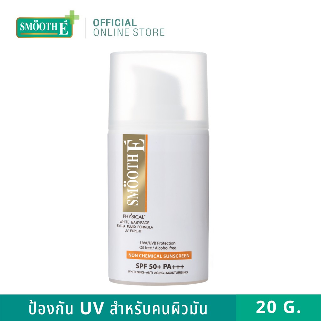 Smooth E Physical White Extra Fluid SPF50+ PA+++ 20 ml. ครีมกันแดดเนื้อ Fluid สำหรับผิวมัน เป็นสิว กันน้ำ ปกป้องนาน 8 ชม