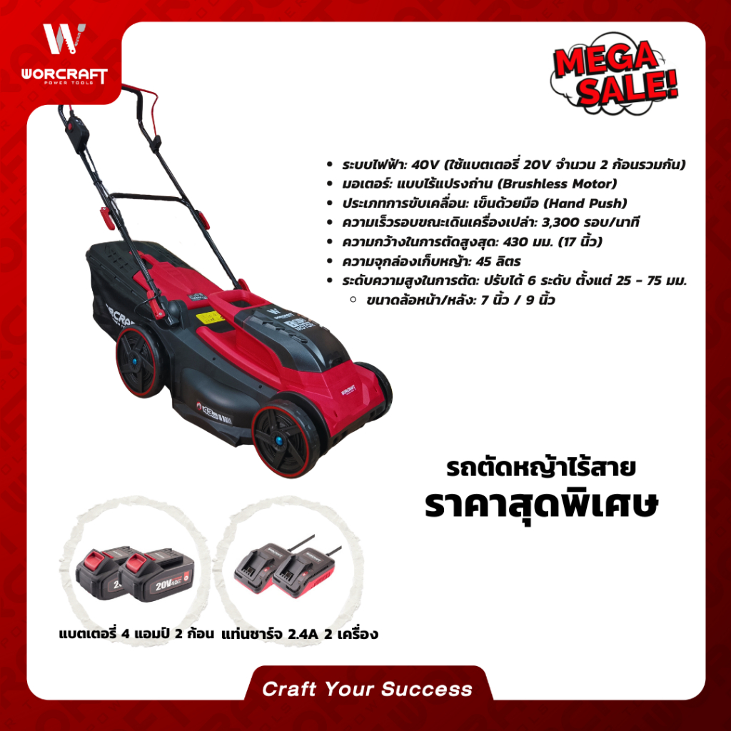 Worcraft รถเข็นตัดหญ้าไร้สาย CLM-S40LiBL