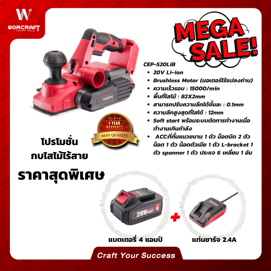 Worcraft เครื่องกบไสไม้ไร้สาย รุ่น CEP-S20LiB
