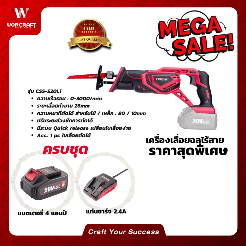 Worcraft เครื่องเลื่อยฉลุไร้สาย รุ่น CJS-S20Li, CJS-S20LiB, CSS-S20Li