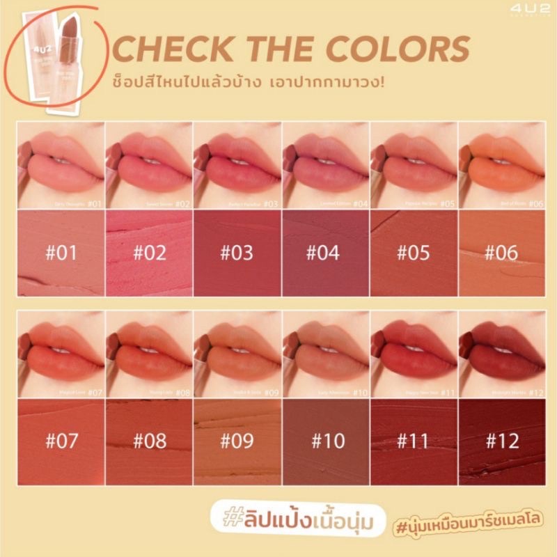 ลิปใหม่ 4U2 FOR YOU TOO เนื้อแมทเนียนนุ่มเหมือน Marshmallow เนื้อลิปนุ่มสีฟุ้งๆ เกาหลีเกาใจม๊ากก มีให้เลือกถึง 12 เฉดสี