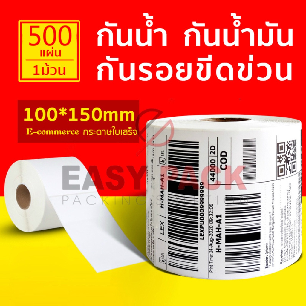 สติ๊กเกอร์ความร้อน กระดาษสติ๊กเกอร์ ใบปะหน้า 100x150 แบบม้วน