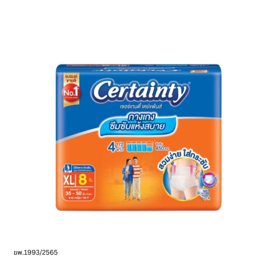 Certainty Daypants เซอร์เทนตี้ เดย์แพ้นส์ กางเกงซึมซับปกติ Size XL 8 ชิ้น