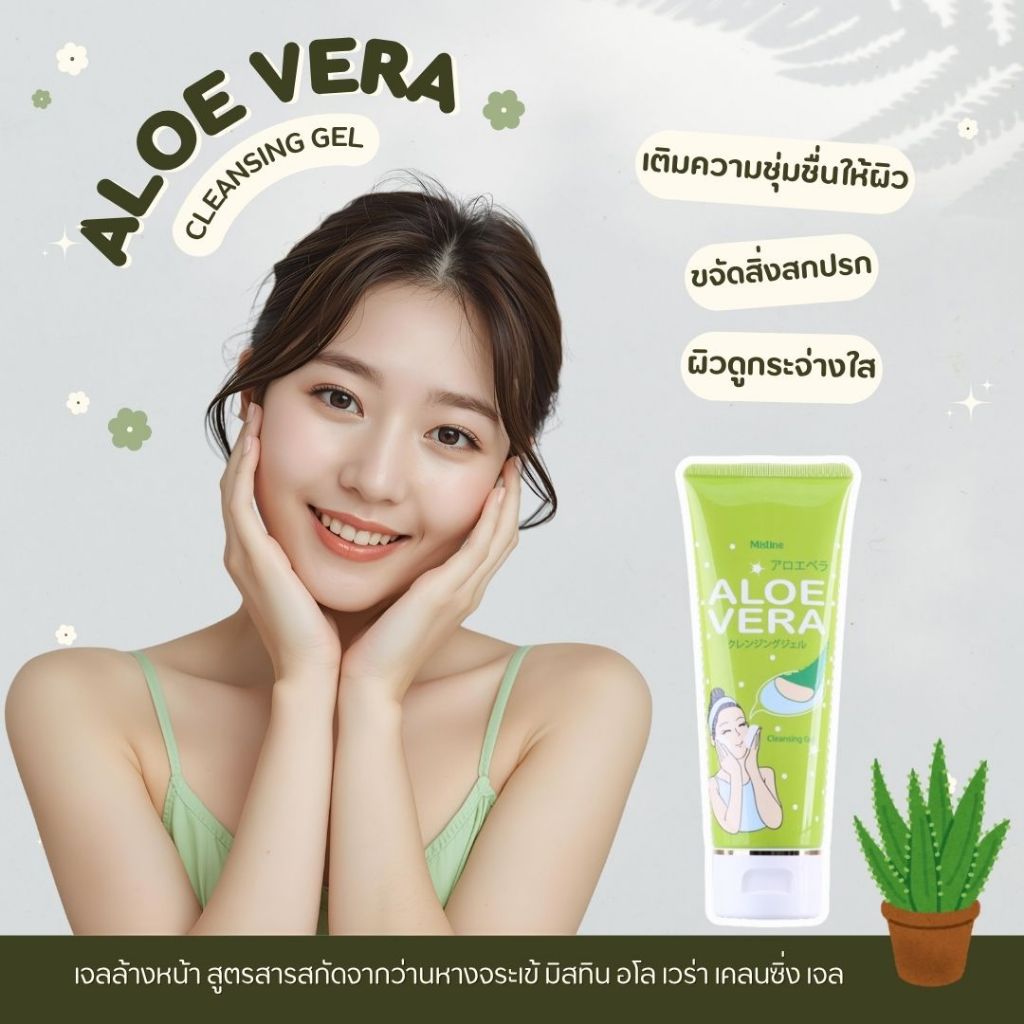เจลล้างหน้าว่านหางจระเข้ เพื่อผิวชุ่มชื่่น มิสทีน อโล เวร่า เคลนซิ่ง เจล Mistine Aloe Vera Cleansing Gel 100 g.
