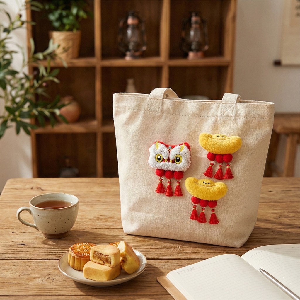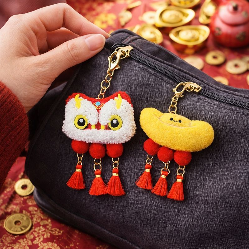 เข็มกลัดจีนสีแดง ตรุษจีน ลายสิงโตน่ารัก เครื่องประดับมงคล รับปีใหม่จีน ใช้ติดเสื้อ
