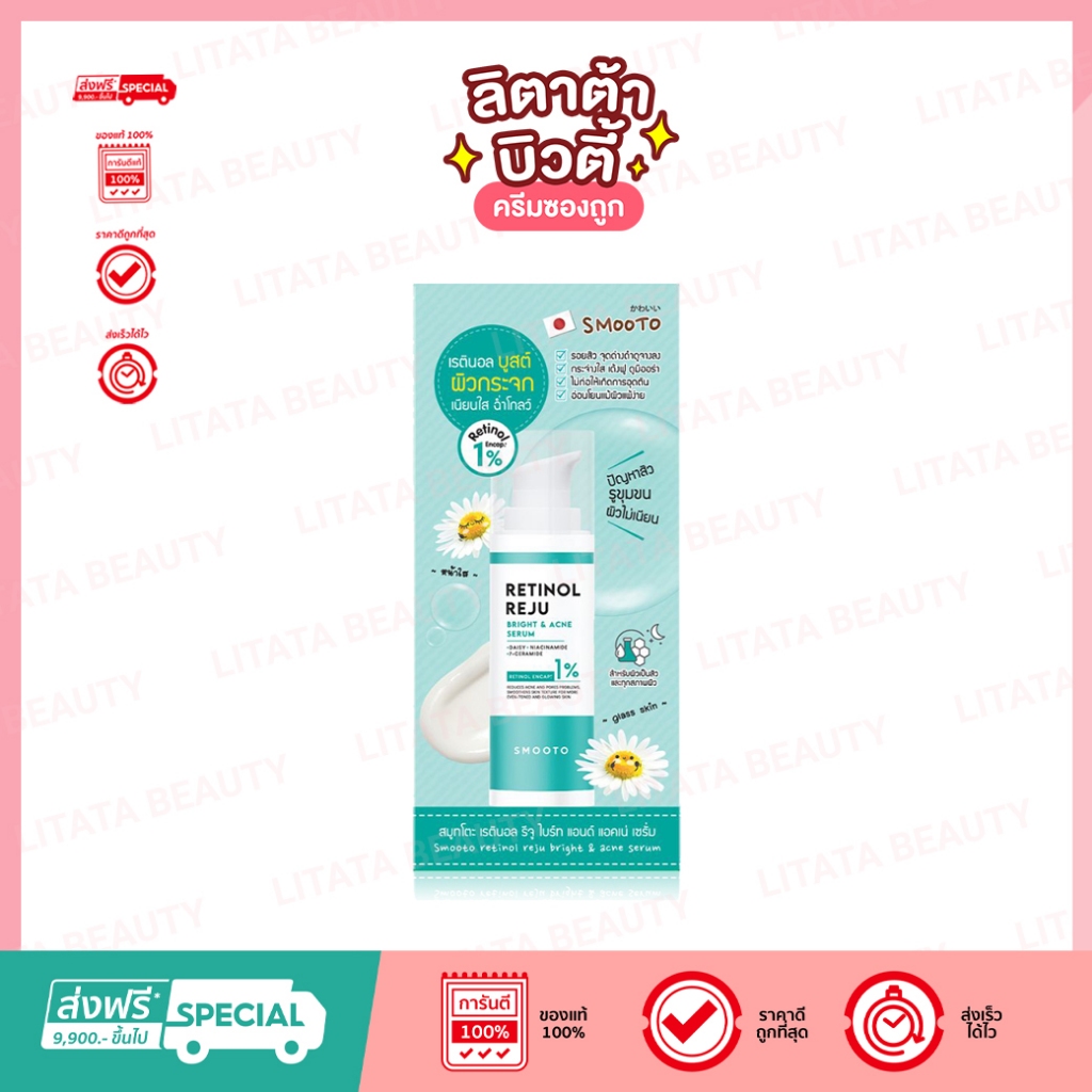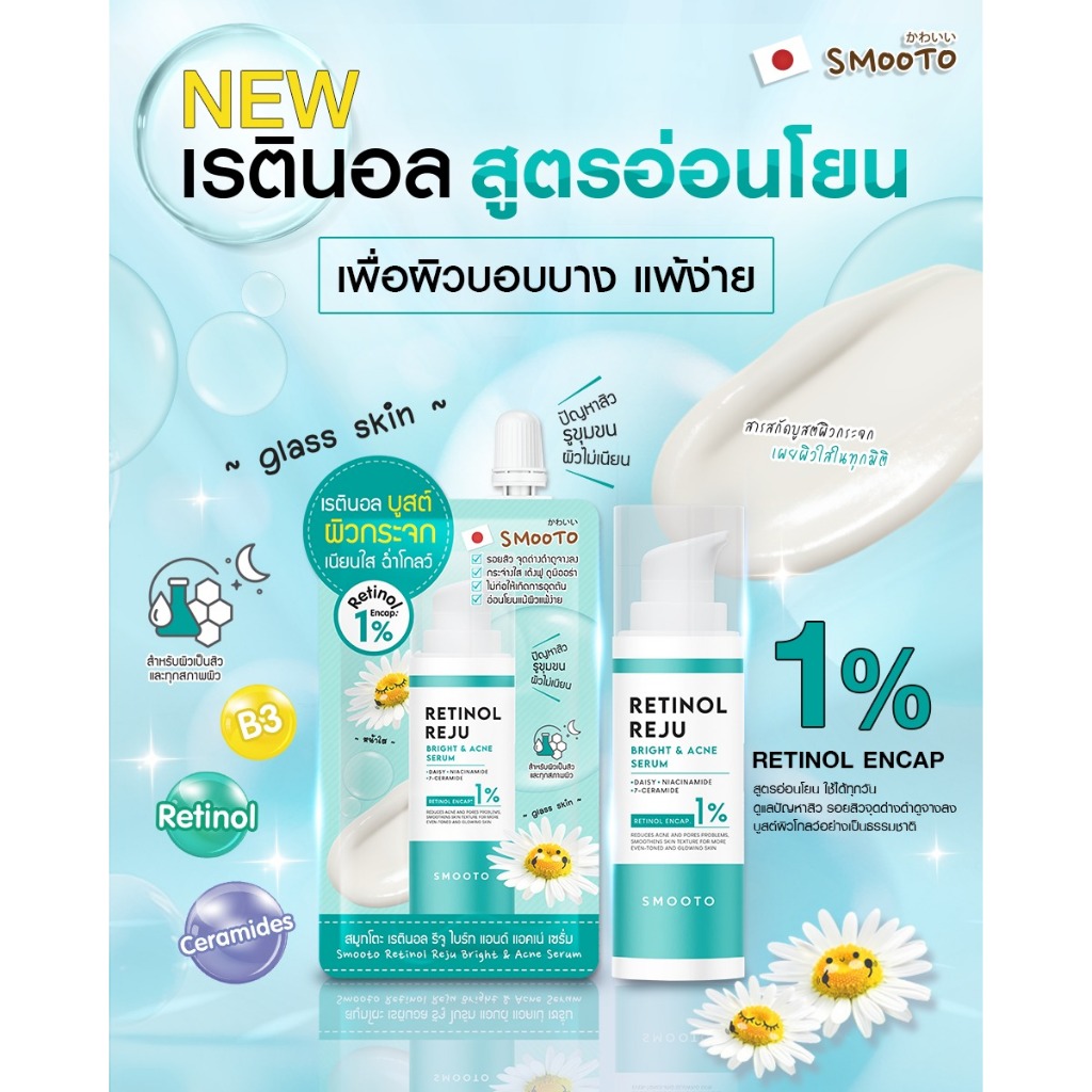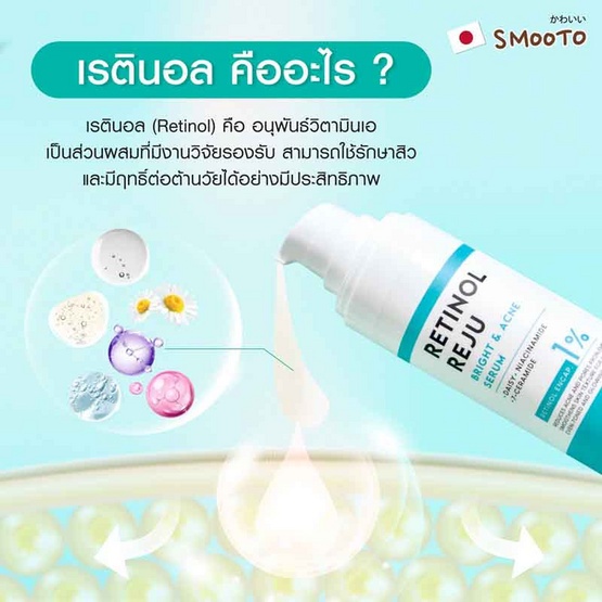 Smooto Retinol Reju Bright & Acne Serum 30g สมูทโตะ เรตินอล รีจู ไบร์ท แอนด์ แอคเน่ เซรั่ม 30 กรัม
