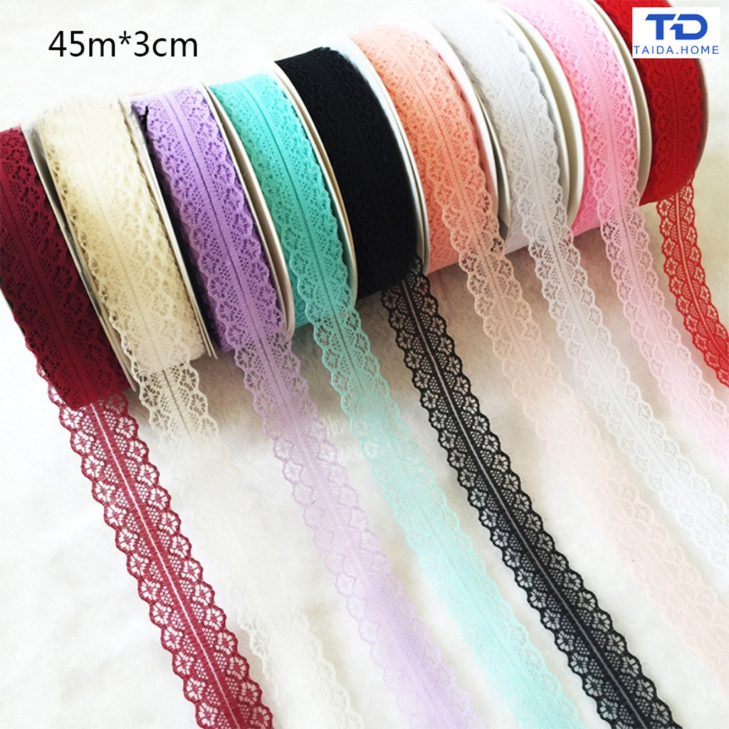 ริบบิ้นลูกไม้กลวงบรรจุภัณฑ์ขนาด 3 ซม. * 45 ม. เหมาะสำหรับตกแต่งงานแต่งงาน DIY เป็นของขวัญดอกไม้