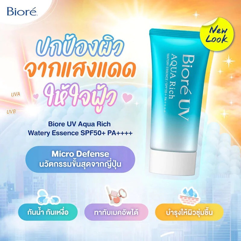 Biore UV Aqua Rich Watery Essence SPF50+/PA++++ 15g บิโอเร ยูวี อะควา ริช วอเตอร์รี่ เอสเซนส์ กันแดดสูตร Micro Defen...
