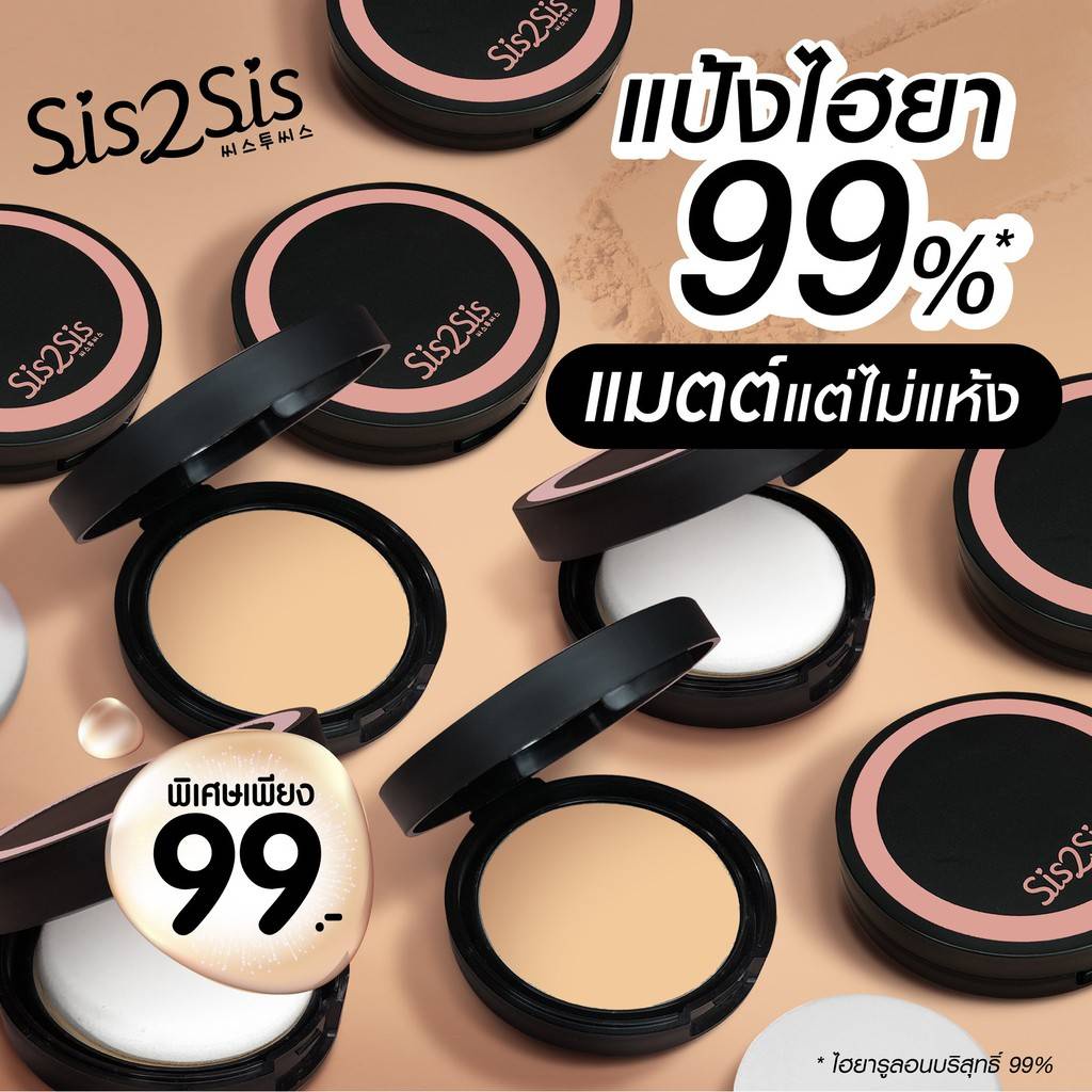 (1 ชิ้น) Sis2Sis Hya Matte Foundation Powder N2 ซิสทูซิส ไฮยา แมตต์ ฟาวเดชั่น พาวเดอร์ 7 กรัม
