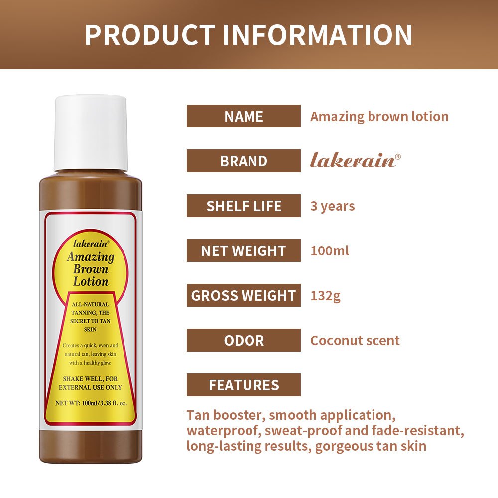 Lakerain Amazing Brown Lotion , Intensive Tanning Lotion , Tanning Booster, Bronzing Solarium Sunbeds ฤดูร้อนยาวนานกันน้ํา, กันเหงื่อ และ Fade-Proof