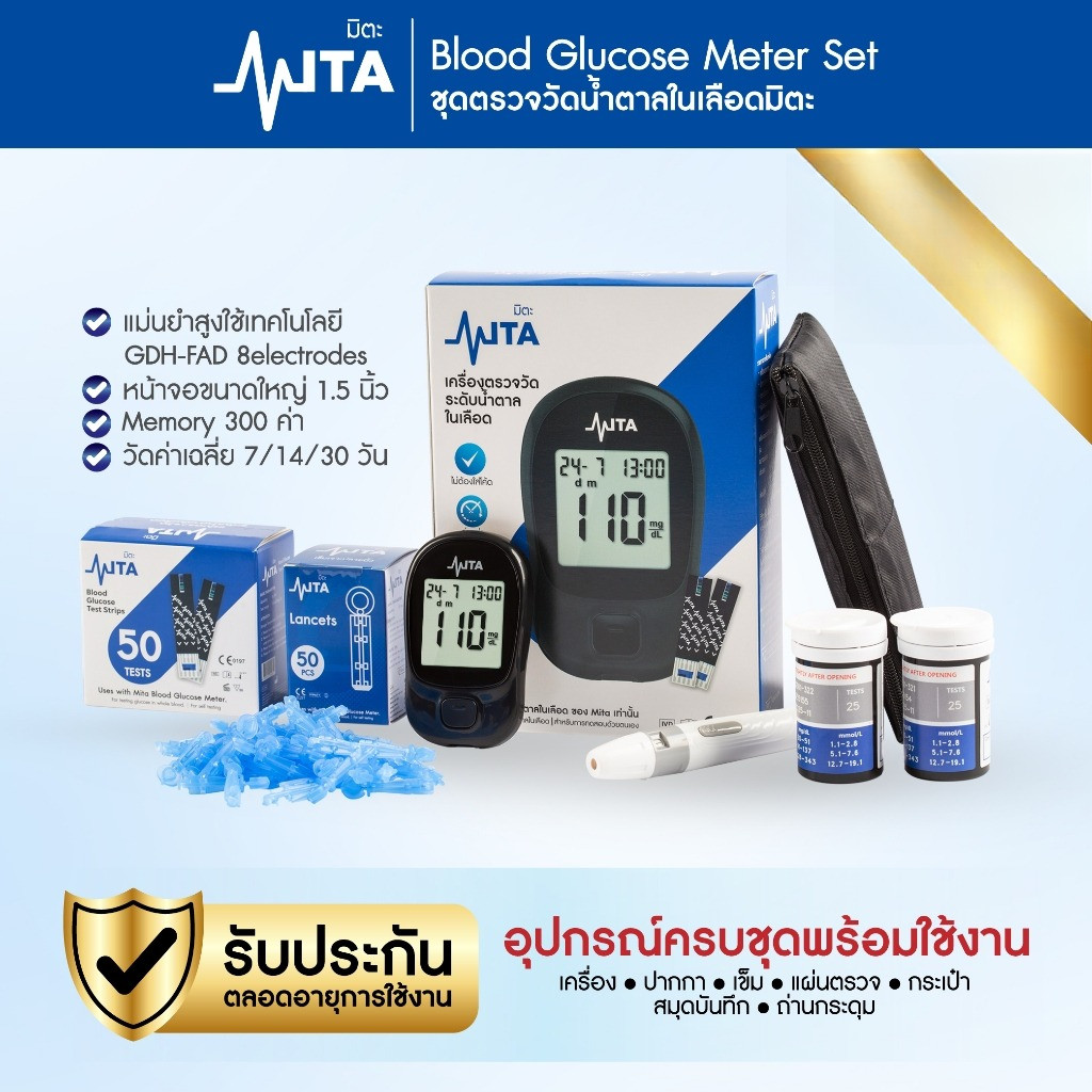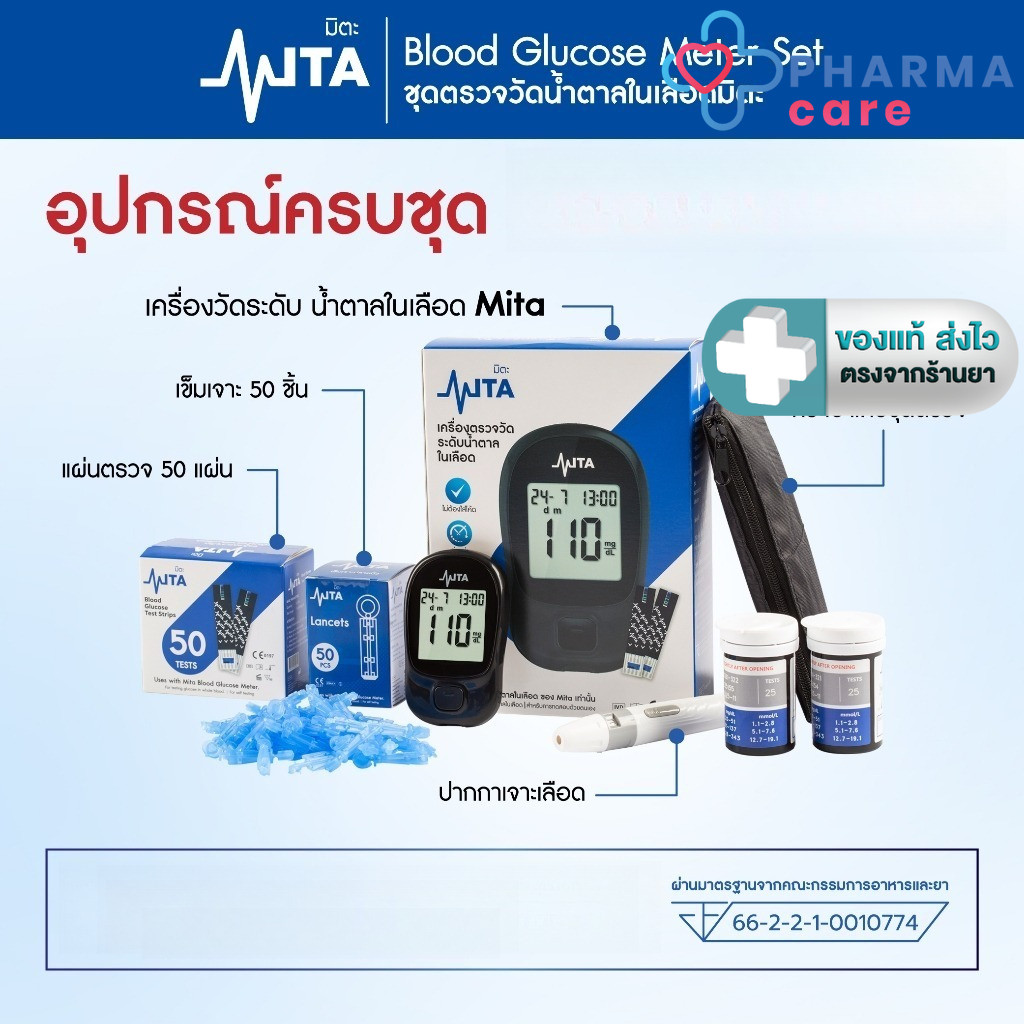 MITA เครื่องตรวจวัดระดับน้ำตาล ชุดตรวจน้ำตาลในเลือด พร้อมเข็ม และ แถบ 50 ชุด [PC]