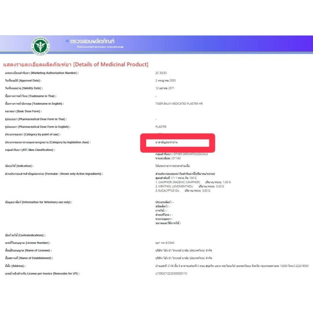 🔥พร้อมส่ง🔥 Tiger Blam Medicated Plaster HR พลาสเตอร์ บรรเทาปวด ตราเสือ สูตรเย็น แผ่นปิดแก้ปวด 1 ซอง (2 แผ่น)