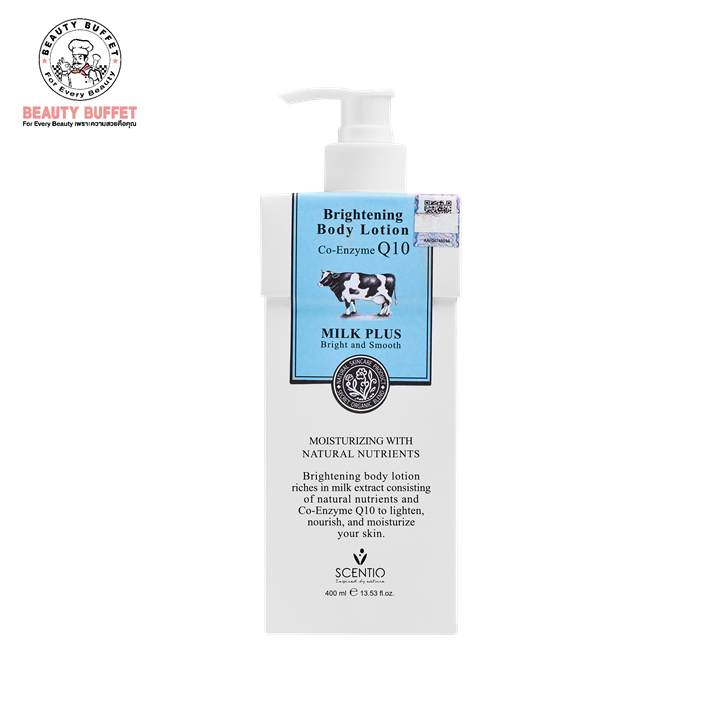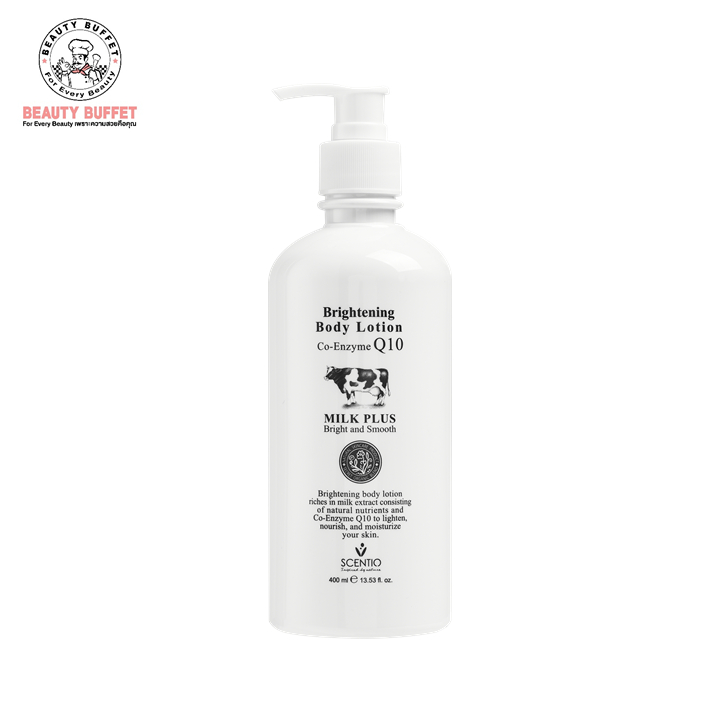 [ แพ็ค 5 ขวด ] SCENTIO MILK PLUS BRIGHTENING Q10 BODY LOTION - เซนทิโอ มิลค์พลัส ไวท์เทนนิ่ง คิวเทน บอดี้ โลชั่น (400ML)