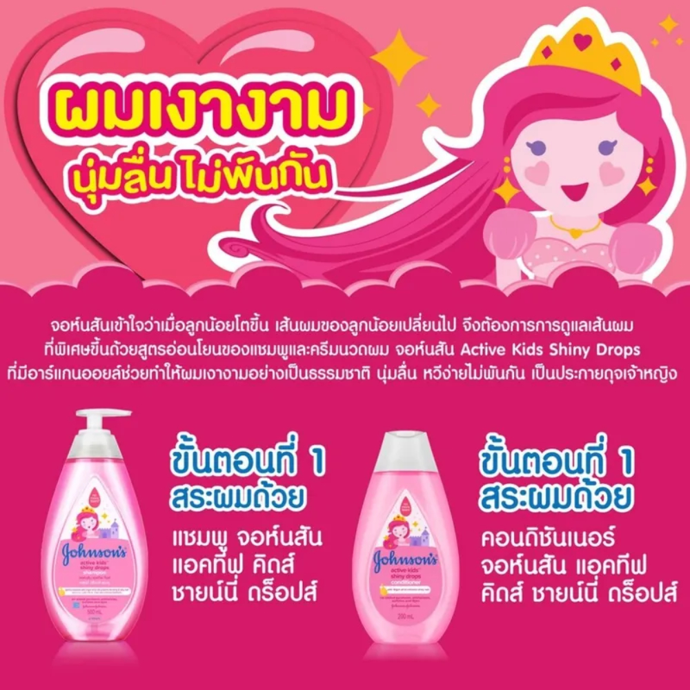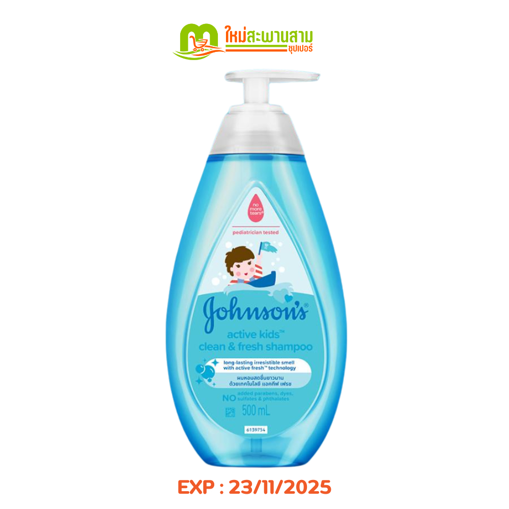 จอห์นสัน Johnson's แชมพูหัวปั้มแอคทีฟคิดส์ สตรอง & เฮลท์ตี้ ชายน์นี่ ดร็อปส์ และคลีน&เฟรช200/500 มล.