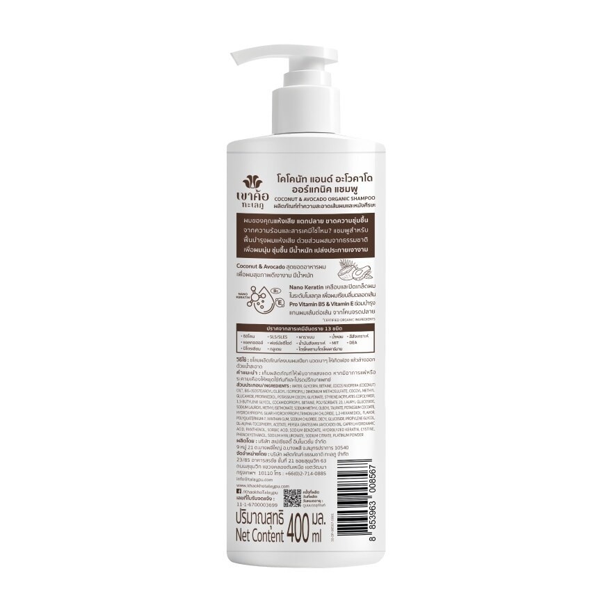 ลดเพิ่ม 30% 🔥 Khaokho เขาค้อทะเลภูTalaypu แชมพู สูตรมะพร้าวและอะโวกาโด ช่วยลดผมแห้งเสีย 400 มล.