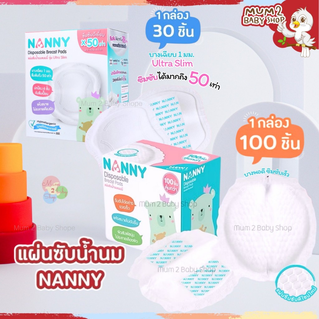 Nanny แผ่นซับน้ำนม 100ชิ้น และ 30ชิ้น ซึมซับดีเยี่ยม แห้งสนิท ผิวสัมผัสนุ่ม แนนนี่